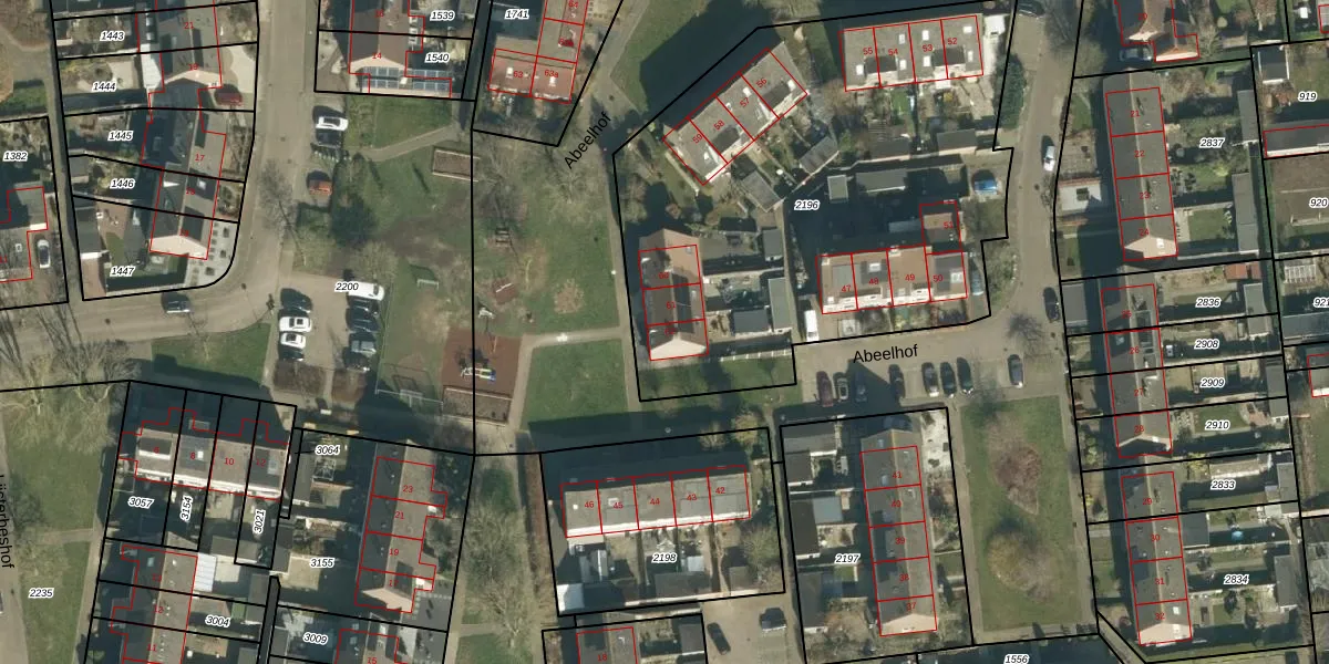 Het perceel waarop Abeelhof 62 staat heeft een oppervlakte van 2702 m². Dit is een zeer groot perceel. De perceeloppervlakte wordt geregistreerd door het Kadaster. Gedetailleerde informatie over de maten van dit perceel kunt u vinden in het rapport Kadastrale kaart met maatvoering van Abeelhof 62.