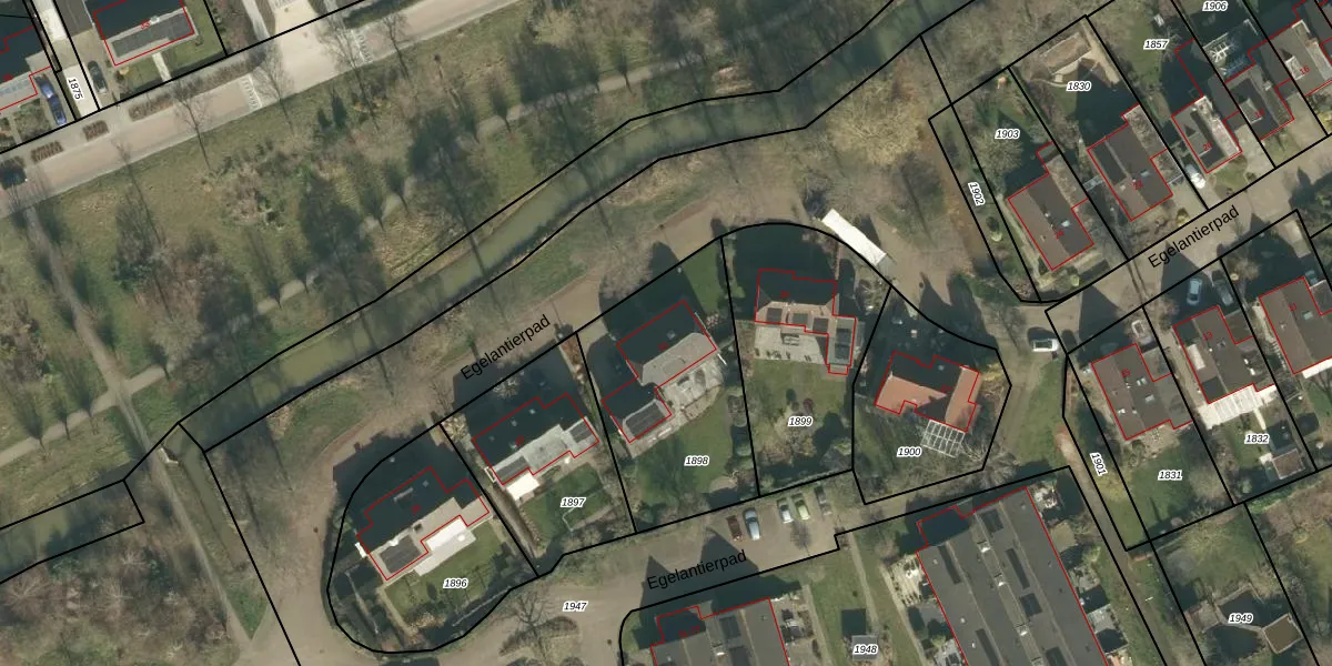 Gebruik de zoekbalk of klik op een perceel voor informatie over de adressen binnen dit perceel.