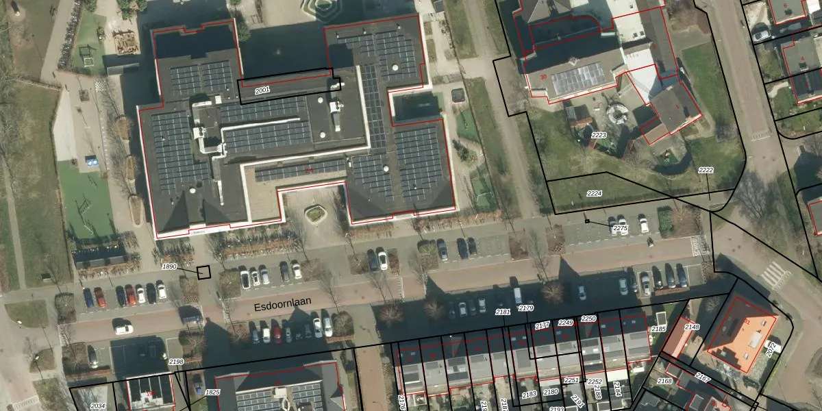 Het perceel waarop Esdoornlaan 2-a staat heeft een oppervlakte van 5,0 ha. Dit is een zeer groot perceel. De perceeloppervlakte wordt geregistreerd door het Kadaster. Gedetailleerde informatie over de maten van dit perceel kunt u vinden in het rapport Kadastrale kaart met maatvoering van Esdoornlaan 2-a.