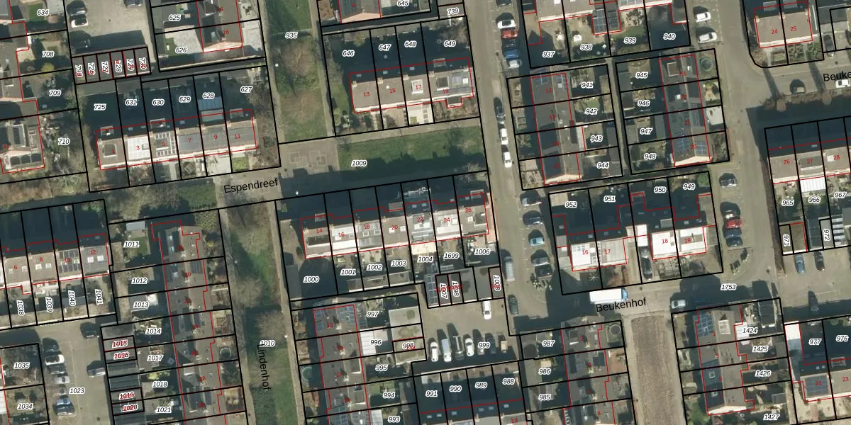 Het perceel waarop Espendreef 22 staat heeft een oppervlakte van 162 m². Dit is een middelgroot perceel. De perceeloppervlakte wordt geregistreerd door het Kadaster. Gedetailleerde informatie over de maten van dit perceel kunt u vinden in het rapport Kadastrale kaart met maatvoering van Espendreef 22.