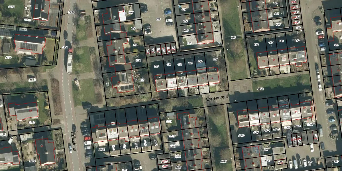 Gebruik de zoekbalk of klik op een perceel voor informatie over de adressen binnen dit perceel.