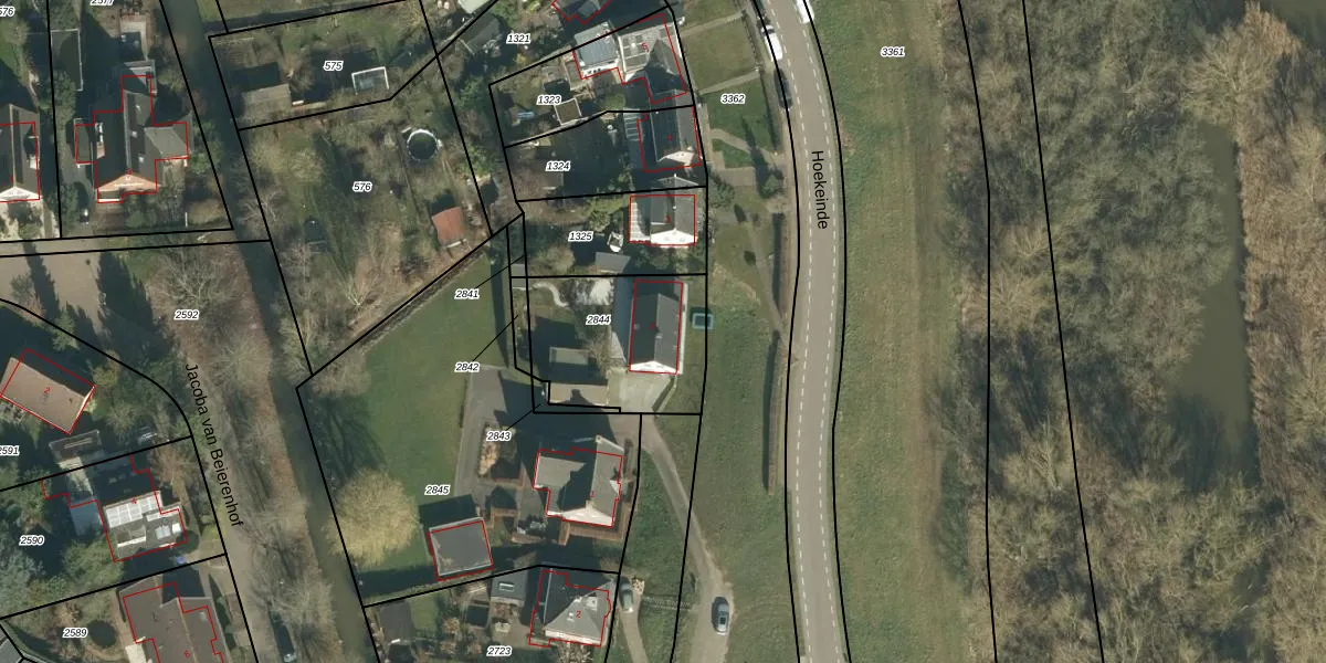 Hoekeinde 2 is gelegen op kadastraal perceel WKD00S2844. Deze kadastrale aanduiding is uniek en wordt gebruikt door het Kadaster om eigendomsrechten en andere zakelijke rechten vast te leggen. Het perceel maakt onderdeel uit van de kadastrale gemeente Werkendam.