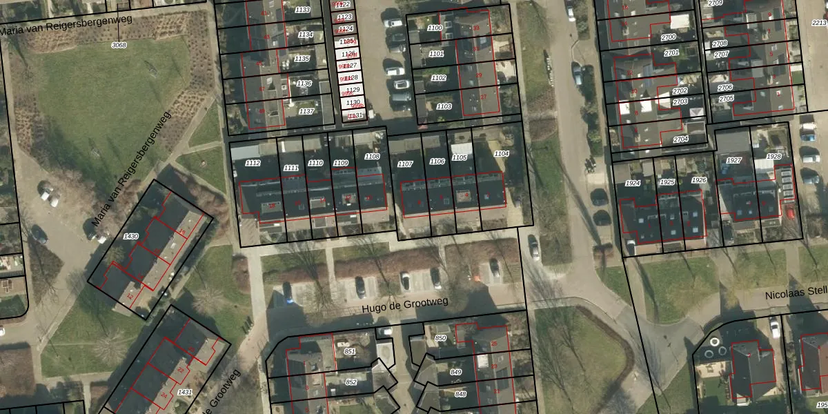 Hugo de Grootweg 8 is gelegen op kadastraal perceel WKD00S1107. Deze kadastrale aanduiding is uniek en wordt gebruikt door het Kadaster om eigendomsrechten en andere zakelijke rechten vast te leggen. Het perceel maakt onderdeel uit van de kadastrale gemeente Werkendam.