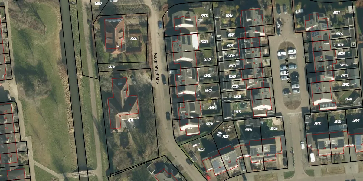 Het perceel waarop Muggenschans 12 staat heeft een oppervlakte van 256 m². Dit is een middelgroot perceel. De perceeloppervlakte wordt geregistreerd door het Kadaster. Gedetailleerde informatie over de maten van dit perceel kunt u vinden in het rapport Kadastrale kaart met maatvoering van Muggenschans 12.