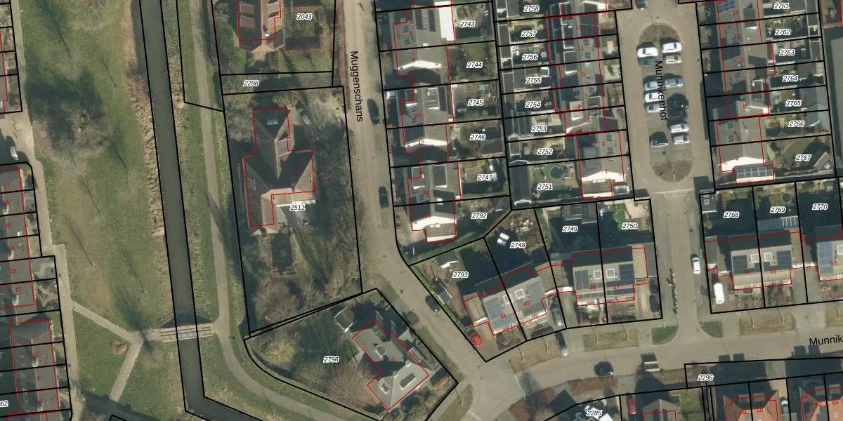 Het perceel waarop Muggenschans 16 staat heeft een oppervlakte van 293 m². Dit is een middelgroot perceel. De perceeloppervlakte wordt geregistreerd door het Kadaster. Gedetailleerde informatie over de maten van dit perceel kunt u vinden in het rapport Kadastrale kaart met maatvoering van Muggenschans 16.