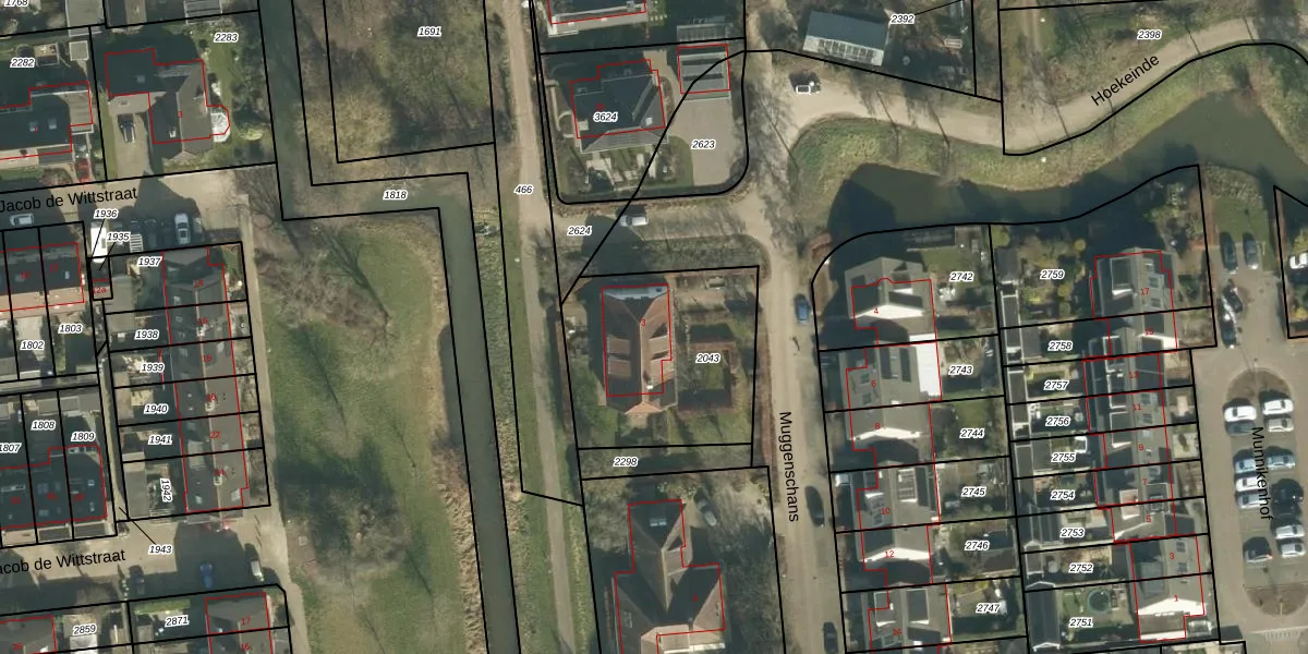 Het perceel waarop Muggenschans 3 staat heeft een oppervlakte van 760 m². Dit is een groot perceel. De perceeloppervlakte wordt geregistreerd door het Kadaster. Gedetailleerde informatie over de maten van dit perceel kunt u vinden in het rapport Kadastrale kaart met maatvoering van Muggenschans 3.
