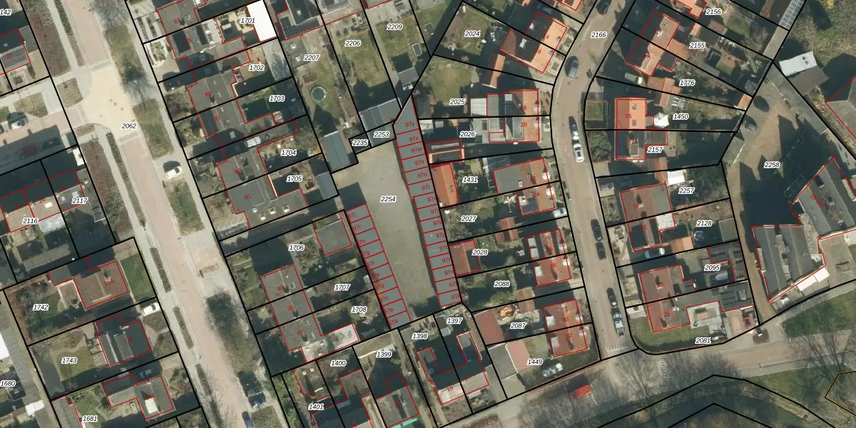Notenlaan 97-r is gelegen op kadastraal perceel WKD00W2254. Deze kadastrale aanduiding is uniek en wordt gebruikt door het Kadaster om eigendomsrechten en andere zakelijke rechten vast te leggen. Het perceel maakt onderdeel uit van de kadastrale gemeente Werkendam.