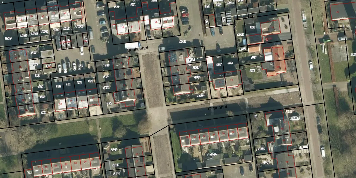 Gebruik de zoekbalk of klik op een perceel voor informatie over de adressen binnen dit perceel.