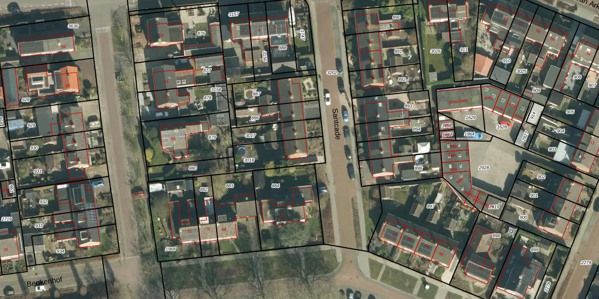 Het perceel waarop Santcade 1 staat heeft een oppervlakte van 269 m². Dit is een middelgroot perceel. De perceeloppervlakte wordt geregistreerd door het Kadaster. Gedetailleerde informatie over de maten van dit perceel kunt u vinden in het rapport Kadastrale kaart met maatvoering van Santcade 1.