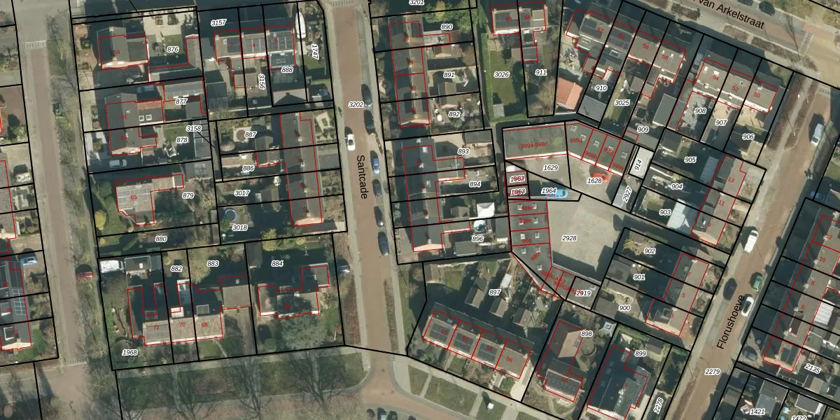 Het perceel waarop Santcade 4 staat heeft een oppervlakte van 918 m². Dit is een groot perceel. De perceeloppervlakte wordt geregistreerd door het Kadaster. Gedetailleerde informatie over de maten van dit perceel kunt u vinden in het rapport Kadastrale kaart met maatvoering van Santcade 4.
