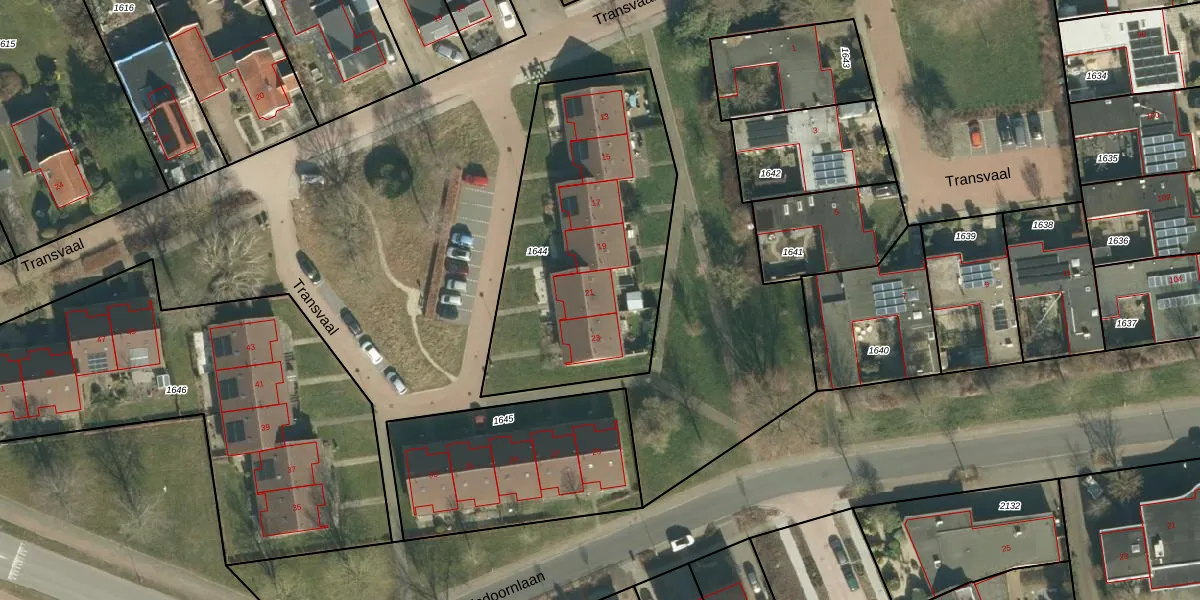 Het perceel waarop Transvaal 21 staat heeft een oppervlakte van 1270 m². Dit is een zeer groot perceel. De perceeloppervlakte wordt geregistreerd door het Kadaster. Gedetailleerde informatie over de maten van dit perceel kunt u vinden in het rapport Kadastrale kaart met maatvoering van Transvaal 21.