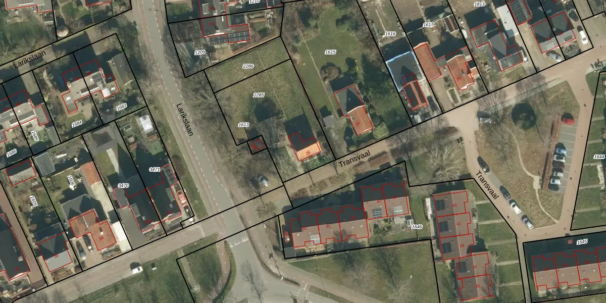 Het perceel waarop Transvaal 26 staat heeft een oppervlakte van 857 m². Dit is een groot perceel. De perceeloppervlakte wordt geregistreerd door het Kadaster. Gedetailleerde informatie over de maten van dit perceel kunt u vinden in het rapport Kadastrale kaart met maatvoering van Transvaal 26.