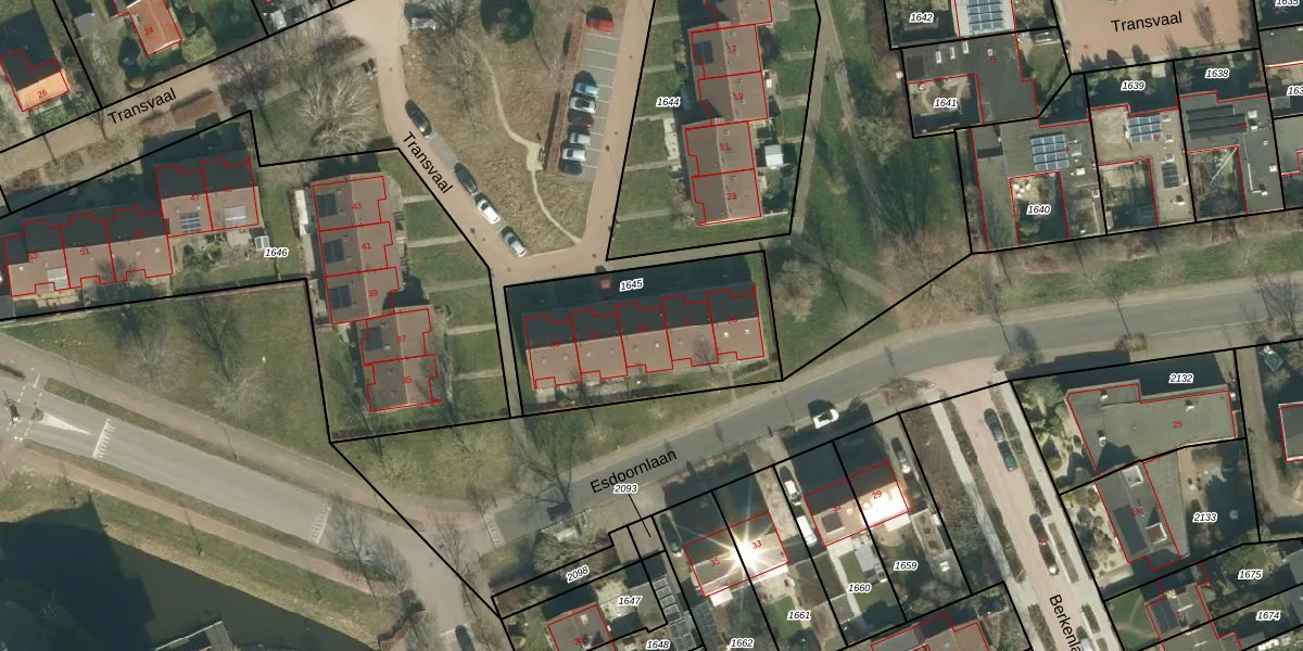 Het perceel waarop Transvaal 29 staat heeft een oppervlakte van 809 m². Dit is een groot perceel. De perceeloppervlakte wordt geregistreerd door het Kadaster. Gedetailleerde informatie over de maten van dit perceel kunt u vinden in het rapport Kadastrale kaart met maatvoering van Transvaal 29.