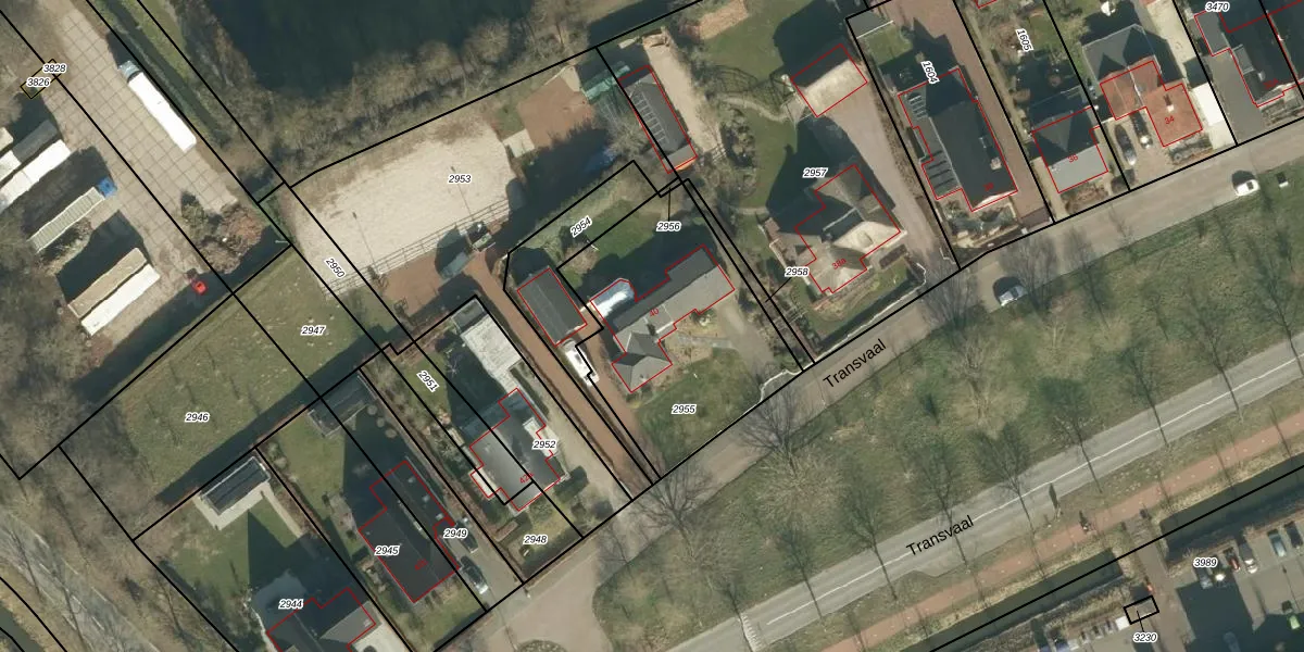 Het perceel waarop Transvaal 40 staat heeft een oppervlakte van 905 m². Dit is een groot perceel. De perceeloppervlakte wordt geregistreerd door het Kadaster. Gedetailleerde informatie over de maten van dit perceel kunt u vinden in het rapport Kadastrale kaart met maatvoering van Transvaal 40.