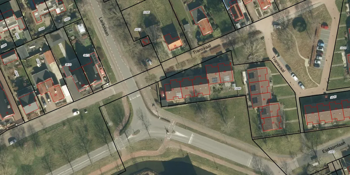 Het perceel waarop Transvaal 53 staat heeft een oppervlakte van 2091 m². Dit is een zeer groot perceel. De perceeloppervlakte wordt geregistreerd door het Kadaster. Gedetailleerde informatie over de maten van dit perceel kunt u vinden in het rapport Kadastrale kaart met maatvoering van Transvaal 53.