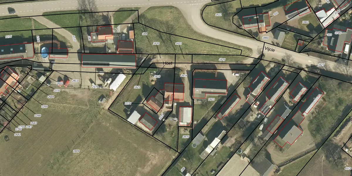 Het perceel waarop Vijcie 1-a staat heeft een oppervlakte van 676 m². Dit is een groot perceel. De perceeloppervlakte wordt geregistreerd door het Kadaster. Gedetailleerde informatie over de maten van dit perceel kunt u vinden in het rapport Kadastrale kaart met maatvoering van Vijcie 1-a.