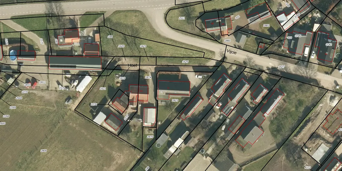 Het perceel waarop Vijcie 1-c staat heeft een oppervlakte van 678 m². Dit is een groot perceel. De perceeloppervlakte wordt geregistreerd door het Kadaster. Gedetailleerde informatie over de maten van dit perceel kunt u vinden in het rapport Kadastrale kaart met maatvoering van Vijcie 1-c.