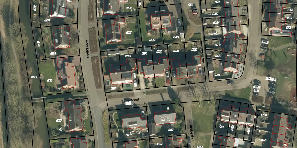 Vlierdreef 5 is gelegen op kadastraal perceel WKD00S1379. Deze kadastrale aanduiding is uniek en wordt gebruikt door het Kadaster om eigendomsrechten en andere zakelijke rechten vast te leggen. Het perceel maakt onderdeel uit van de kadastrale gemeente Werkendam.