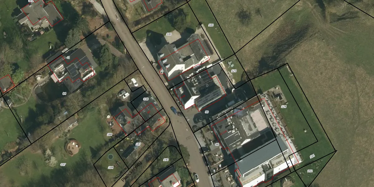 Het adres is gelegen op perceel 99 in de sectie H en de kadastrale gemeente Wittem. De kadastrale aanduiding is aldus WTM00-H-99. De gemiddelde perceelgrootte in Wittem is 6053 m². Dit perceel is kleiner: de perceeloppervlakte bedraagt 900 m². Het grootste perceel in de kadastrale gemeente is 50,8 ha. Het kleinste perceel heeft een oppervlakte van 0 m². Op het perceel liggen in totaal 2 adressen. De huidige grenzen van het perceel zijn digitaal in de Basisregistratie Kadaster (BRK) geregistreerd op 28-04-2008.