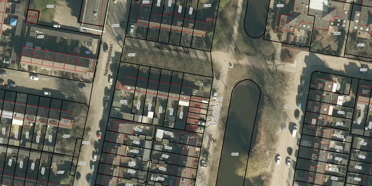 Gebruik de zoekbalk of klik op een perceel voor informatie over de adressen binnen dit perceel.