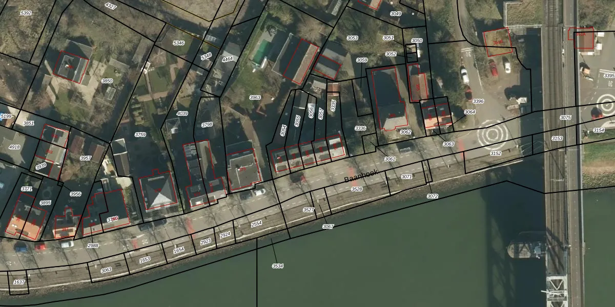 Gebruik de zoekbalk of klik op een perceel voor informatie over de adressen binnen dit perceel.