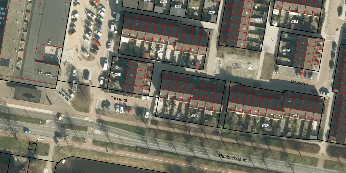 Het perceel waarop De Horst 111 staat heeft een oppervlakte van 992 m². Dit is een groot perceel. De perceeloppervlakte wordt geregistreerd door het Kadaster. Gedetailleerde informatie over de maten van dit perceel kunt u vinden in het rapport Kadastrale kaart met maatvoering van De Horst 111.