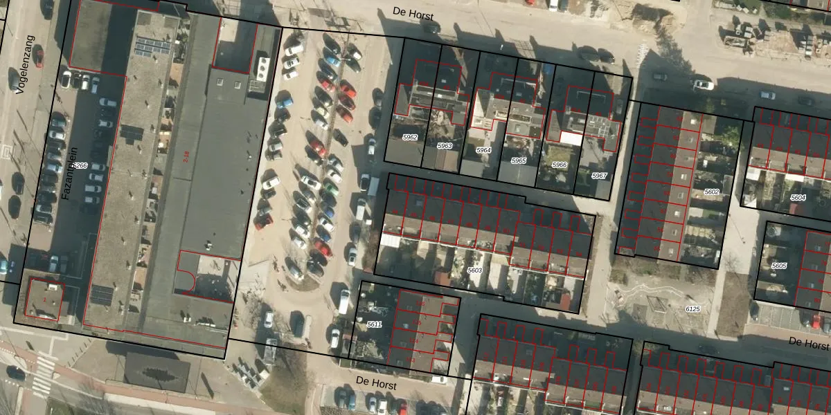 Het perceel waarop De Horst 45 staat heeft een oppervlakte van 1217 m². Dit is een zeer groot perceel. De perceeloppervlakte wordt geregistreerd door het Kadaster. Gedetailleerde informatie over de maten van dit perceel kunt u vinden in het rapport Kadastrale kaart met maatvoering van De Horst 45.