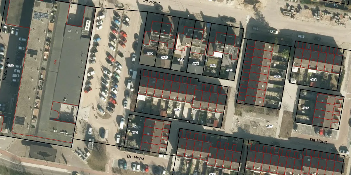 Het perceel waarop De Horst 48 staat heeft een oppervlakte van 1217 m². Dit is een zeer groot perceel. De perceeloppervlakte wordt geregistreerd door het Kadaster. Gedetailleerde informatie over de maten van dit perceel kunt u vinden in het rapport Kadastrale kaart met maatvoering van De Horst 48.