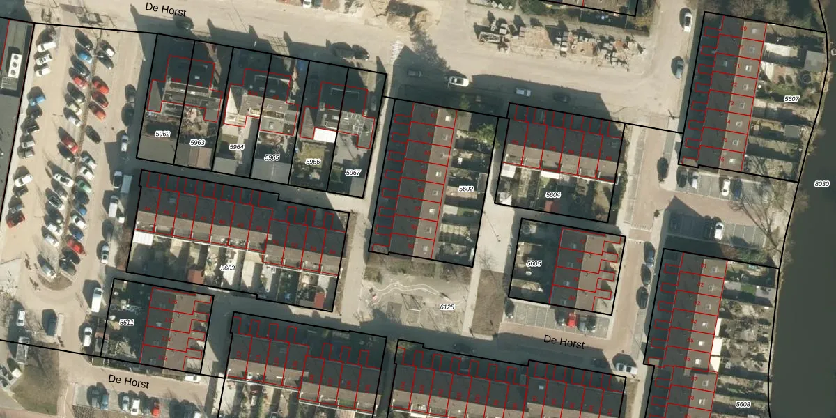 Het perceel waarop De Horst 57 staat heeft een oppervlakte van 920 m². Dit is een groot perceel. De perceeloppervlakte wordt geregistreerd door het Kadaster. Gedetailleerde informatie over de maten van dit perceel kunt u vinden in het rapport Kadastrale kaart met maatvoering van De Horst 57.