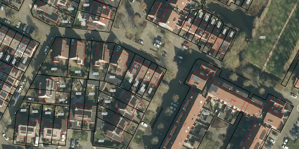 Gebruik de zoekbalk of klik op een perceel voor informatie over de adressen binnen dit perceel.