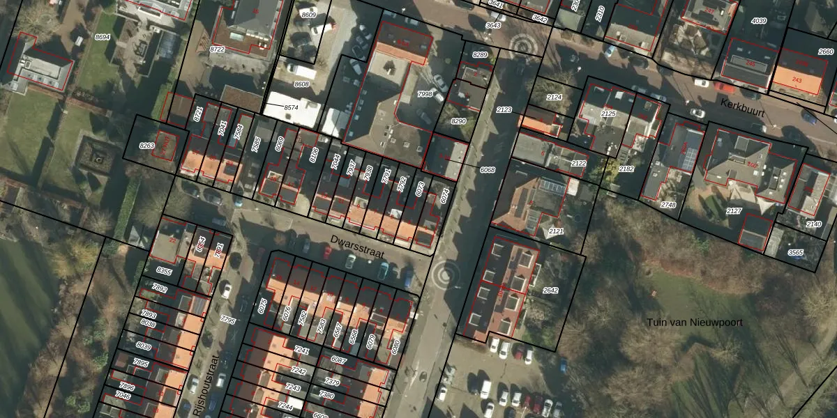 Gebruik de zoekbalk of klik op een perceel voor informatie over de adressen binnen dit perceel.