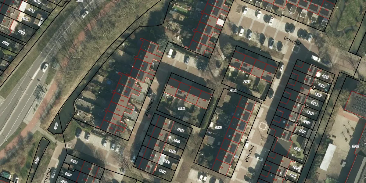 Het perceel waarop Elzenhof 190 staat heeft een oppervlakte van 557 m². Dit is een groot perceel. De perceeloppervlakte wordt geregistreerd door het Kadaster. Gedetailleerde informatie over de maten van dit perceel kunt u vinden in het rapport Kadastrale kaart met maatvoering van Elzenhof 190.