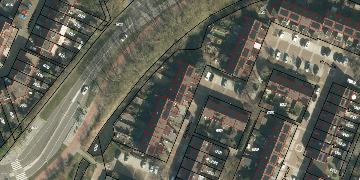 Het perceel waarop Elzenhof 199 staat heeft een oppervlakte van 4215 m². Dit is een zeer groot perceel. De perceeloppervlakte wordt geregistreerd door het Kadaster. Gedetailleerde informatie over de maten van dit perceel kunt u vinden in het rapport Kadastrale kaart met maatvoering van Elzenhof 199.