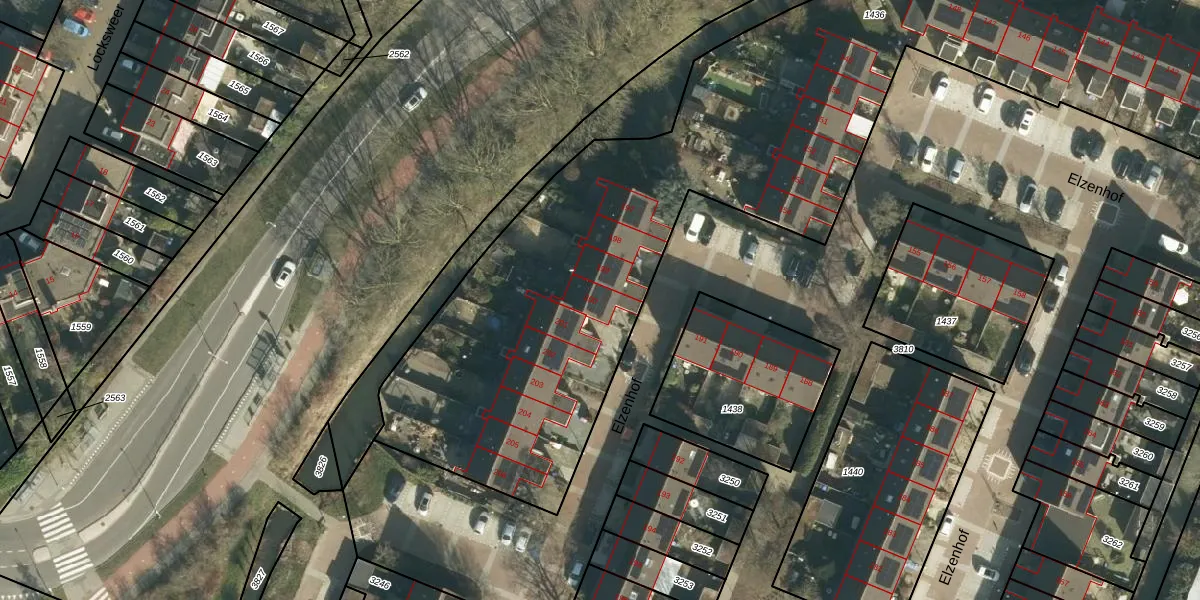 Het perceel waarop Elzenhof 200 staat heeft een oppervlakte van 4215 m². Dit is een zeer groot perceel. De perceeloppervlakte wordt geregistreerd door het Kadaster. Gedetailleerde informatie over de maten van dit perceel kunt u vinden in het rapport Kadastrale kaart met maatvoering van Elzenhof 200.