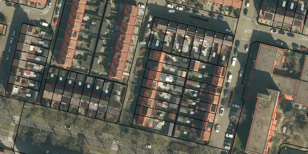 Het perceel waarop IJsselstraat 21 staat heeft een oppervlakte van 162 m². Dit is een middelgroot perceel. De perceeloppervlakte wordt geregistreerd door het Kadaster. Gedetailleerde informatie over de maten van dit perceel kunt u vinden in het rapport Kadastrale kaart met maatvoering van IJsselstraat 21.