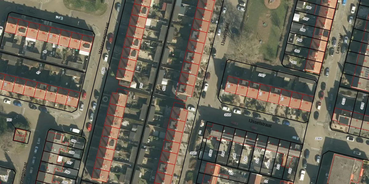 Het perceel waarop IJsselstraat 42 staat heeft een oppervlakte van 3313 m². Dit is een zeer groot perceel. De perceeloppervlakte wordt geregistreerd door het Kadaster. Gedetailleerde informatie over de maten van dit perceel kunt u vinden in het rapport Kadastrale kaart met maatvoering van IJsselstraat 42.
