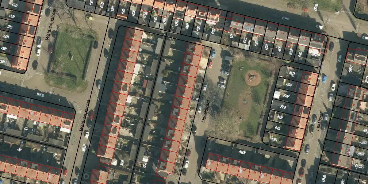 Het perceel waarop IJsselstraat 56 staat heeft een oppervlakte van 3313 m². Dit is een zeer groot perceel. De perceeloppervlakte wordt geregistreerd door het Kadaster. Gedetailleerde informatie over de maten van dit perceel kunt u vinden in het rapport Kadastrale kaart met maatvoering van IJsselstraat 56.