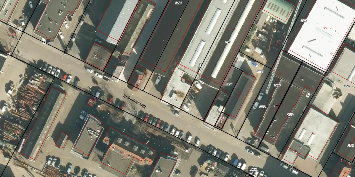 Het perceel waarop Industrieweg 57 staat heeft een oppervlakte van 2626 m². Dit is een zeer groot perceel. De perceeloppervlakte wordt geregistreerd door het Kadaster. Gedetailleerde informatie over de maten van dit perceel kunt u vinden in het rapport Kadastrale kaart met maatvoering van Industrieweg 57.