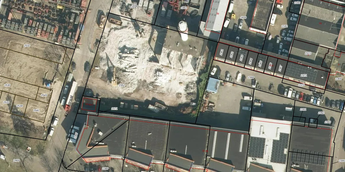 Het perceel waarop Krausstraat 39 staat heeft een oppervlakte van 3512 m². Dit is een zeer groot perceel. De perceeloppervlakte wordt geregistreerd door het Kadaster. Gedetailleerde informatie over de maten van dit perceel kunt u vinden in het rapport Kadastrale kaart met maatvoering van Krausstraat 39.