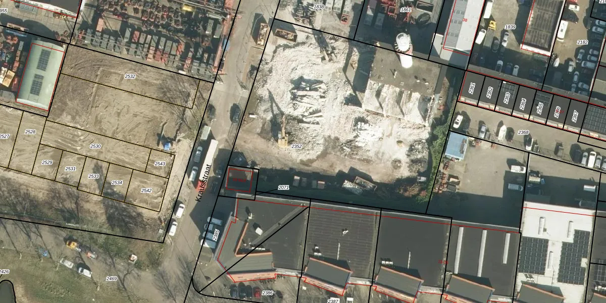 Het perceel waarop Krausstraat 7 staat heeft een oppervlakte van 3512 m². Dit is een zeer groot perceel. De perceeloppervlakte wordt geregistreerd door het Kadaster. Gedetailleerde informatie over de maten van dit perceel kunt u vinden in het rapport Kadastrale kaart met maatvoering van Krausstraat 7.
