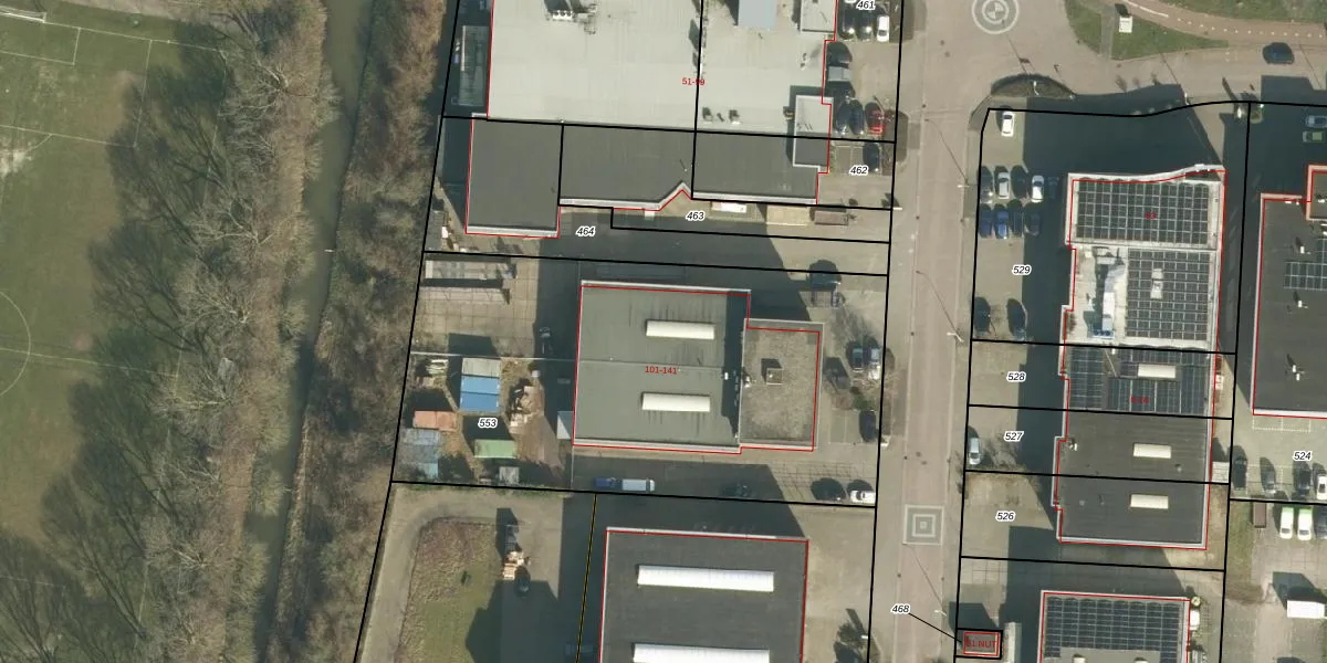 Het perceel waarop Kubus 101 staat heeft een oppervlakte van 2507 m². Dit is een zeer groot perceel. De perceeloppervlakte wordt geregistreerd door het Kadaster. Gedetailleerde informatie over de maten van dit perceel kunt u vinden in het rapport Kadastrale kaart met maatvoering van Kubus 101.