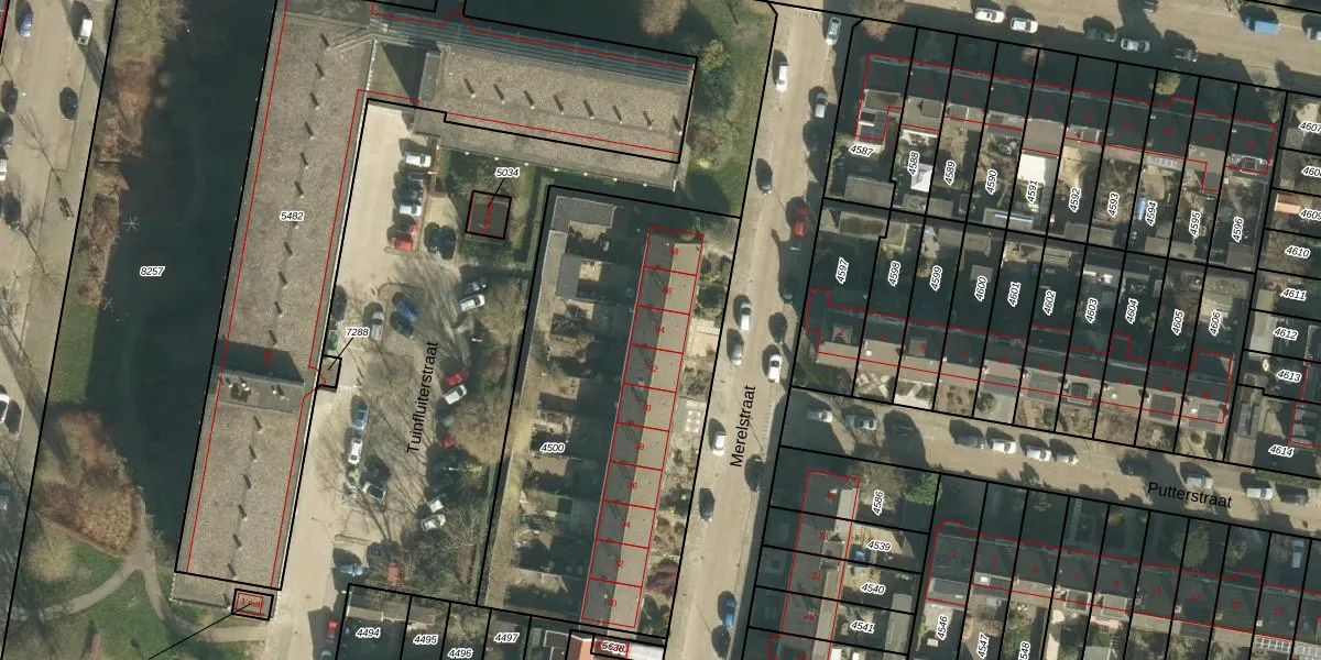 Het perceel waarop Merelstraat 44 staat heeft een oppervlakte van 1880 m². Dit is een zeer groot perceel. De perceeloppervlakte wordt geregistreerd door het Kadaster. Gedetailleerde informatie over de maten van dit perceel kunt u vinden in het rapport Kadastrale kaart met maatvoering van Merelstraat 44.