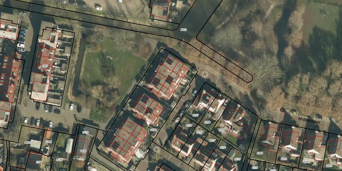 Het perceel waarop Middenveer 118 staat heeft een oppervlakte van 1833 m². Dit is een zeer groot perceel. De perceeloppervlakte wordt geregistreerd door het Kadaster. Gedetailleerde informatie over de maten van dit perceel kunt u vinden in het rapport Kadastrale kaart met maatvoering van Middenveer 118.