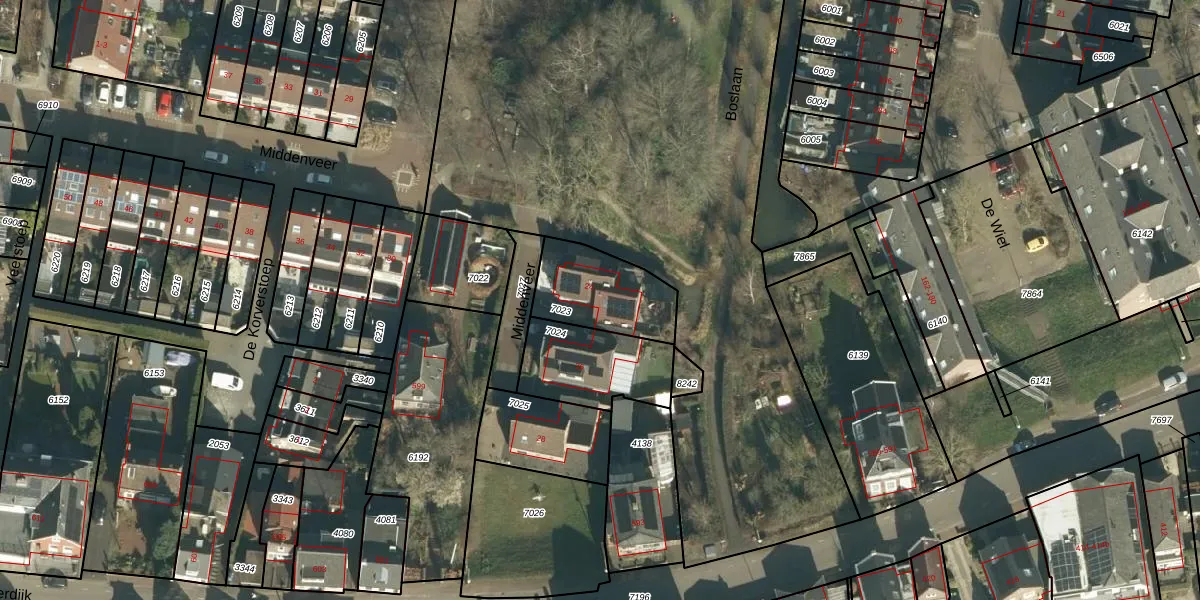 Het perceel waarop Middenveer 24 staat heeft een oppervlakte van 282 m². Dit is een middelgroot perceel. De perceeloppervlakte wordt geregistreerd door het Kadaster. Gedetailleerde informatie over de maten van dit perceel kunt u vinden in het rapport Kadastrale kaart met maatvoering van Middenveer 24.