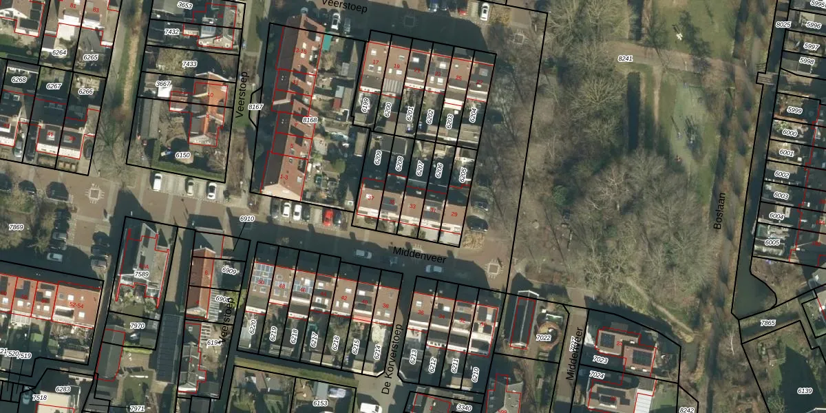 Het perceel waarop Middenveer 33 staat heeft een oppervlakte van 121 m². Dit is een middelgroot perceel. De perceeloppervlakte wordt geregistreerd door het Kadaster. Gedetailleerde informatie over de maten van dit perceel kunt u vinden in het rapport Kadastrale kaart met maatvoering van Middenveer 33.
