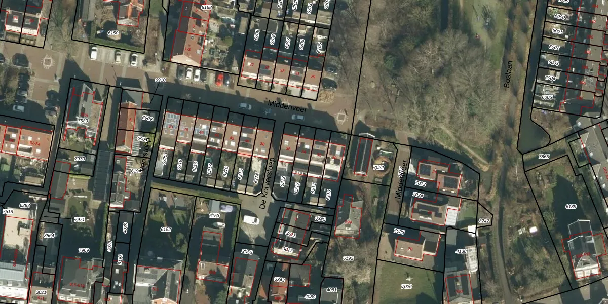 Het perceel waarop Middenveer 34 staat heeft een oppervlakte van 130 m². Dit is een middelgroot perceel. De perceeloppervlakte wordt geregistreerd door het Kadaster. Gedetailleerde informatie over de maten van dit perceel kunt u vinden in het rapport Kadastrale kaart met maatvoering van Middenveer 34.
