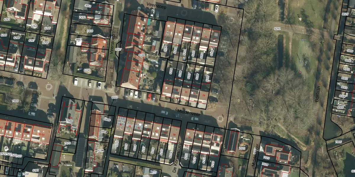 Het perceel waarop Middenveer 35 staat heeft een oppervlakte van 121 m². Dit is een middelgroot perceel. De perceeloppervlakte wordt geregistreerd door het Kadaster. Gedetailleerde informatie over de maten van dit perceel kunt u vinden in het rapport Kadastrale kaart met maatvoering van Middenveer 35.