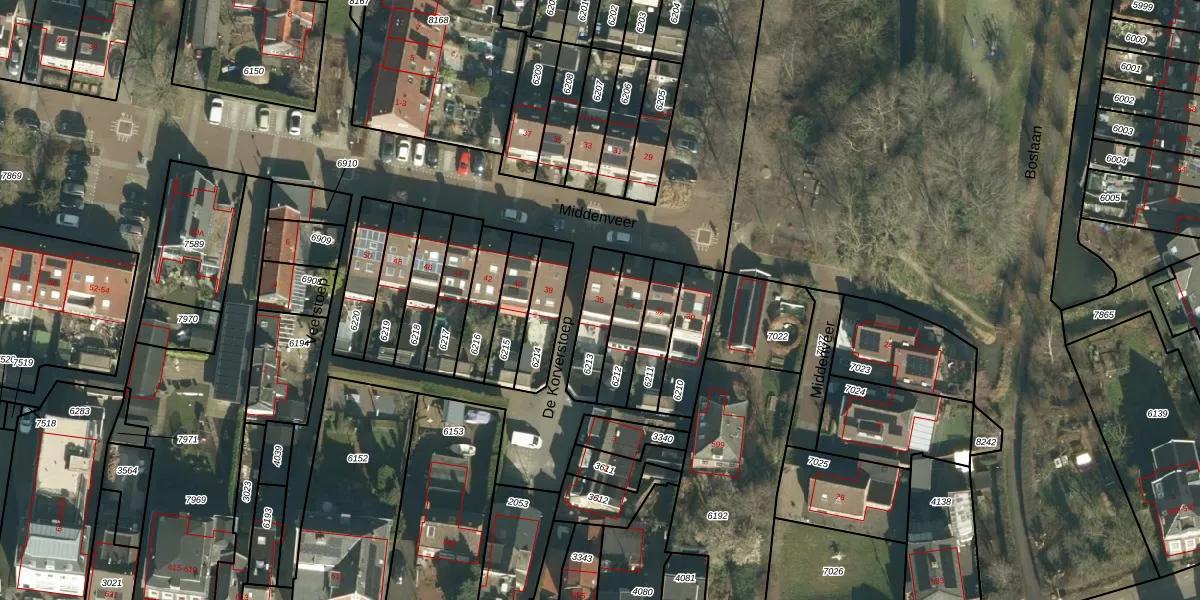 Het perceel waarop Middenveer 36 staat heeft een oppervlakte van 134 m². Dit is een middelgroot perceel. De perceeloppervlakte wordt geregistreerd door het Kadaster. Gedetailleerde informatie over de maten van dit perceel kunt u vinden in het rapport Kadastrale kaart met maatvoering van Middenveer 36.