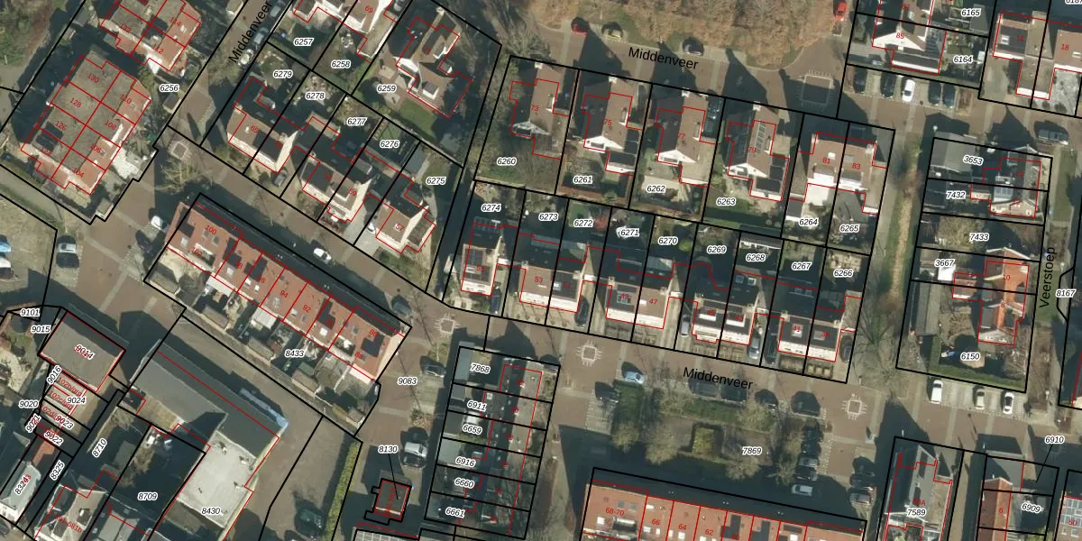 Het perceel waarop Middenveer 53 staat heeft een oppervlakte van 194 m². Dit is een middelgroot perceel. De perceeloppervlakte wordt geregistreerd door het Kadaster. Gedetailleerde informatie over de maten van dit perceel kunt u vinden in het rapport Kadastrale kaart met maatvoering van Middenveer 53.
