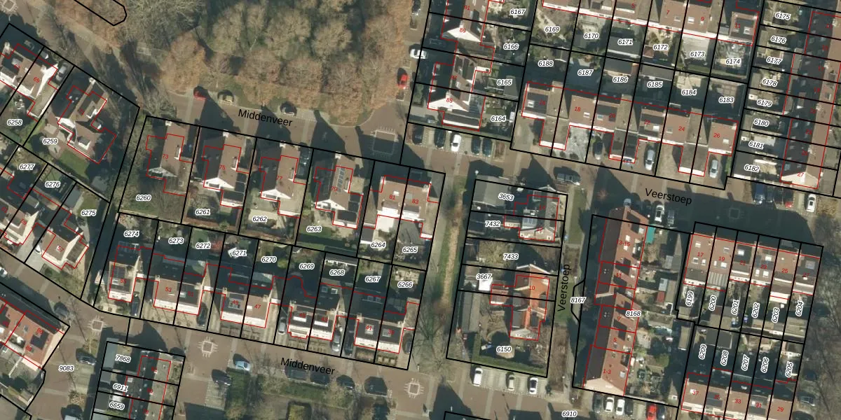 Het perceel waarop Middenveer 83 staat heeft een oppervlakte van 200 m². Dit is een middelgroot perceel. De perceeloppervlakte wordt geregistreerd door het Kadaster. Gedetailleerde informatie over de maten van dit perceel kunt u vinden in het rapport Kadastrale kaart met maatvoering van Middenveer 83.
